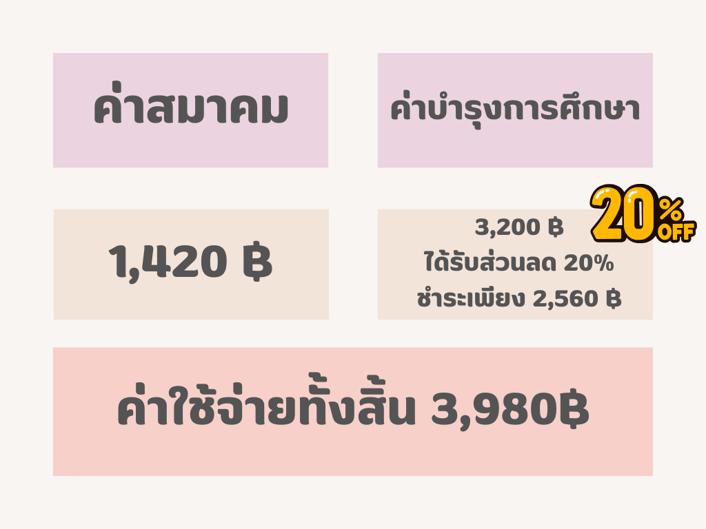 มีเกรดเฉลี่ยสะสม 2.50 – 2.99 ได้รับส่วนลดค่าบำรุงการศึกษา 20 % ![]()