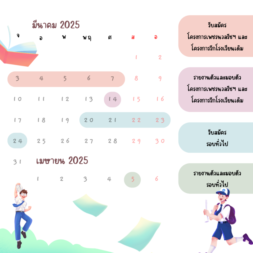 รอบทั่วไป ม.1 รับสมัครวันที่ 20 – 24 มีนาคม 2568 เวลา 8.30 – 16.00 น.