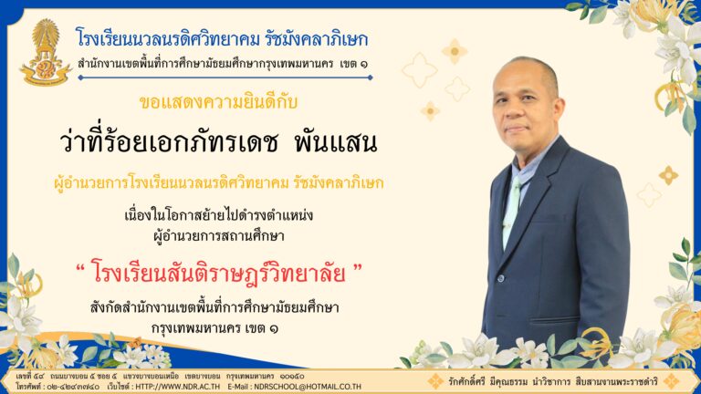 ประกาศ ขอแสดงความยินดีกับ ว่าที่ร้อยเอกภัทรเดช พันแสง ผู้อำนวยการโรงเรียน ย้ายไปดำรงตำแหน่งผู้อำนวยการสถานศึกษา “โรงเรียนสันติราษฎร์วิทยาลัย”10/03/202510/03/2025