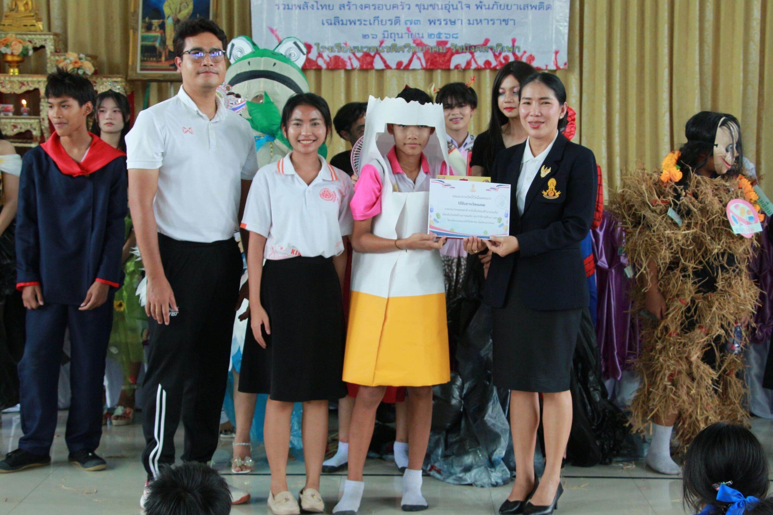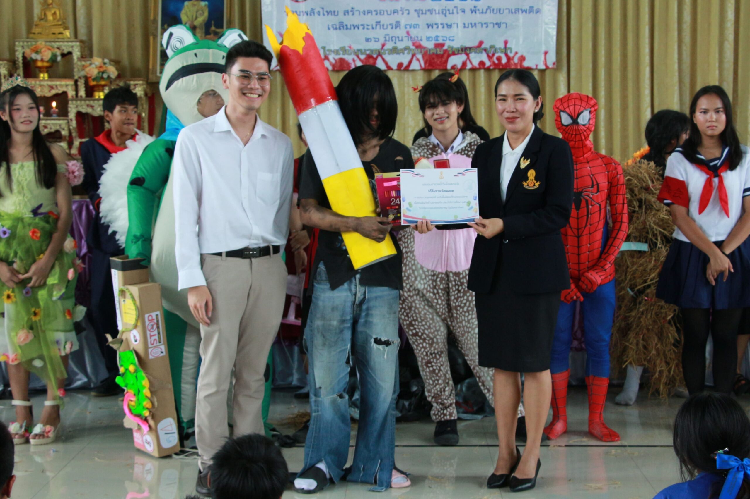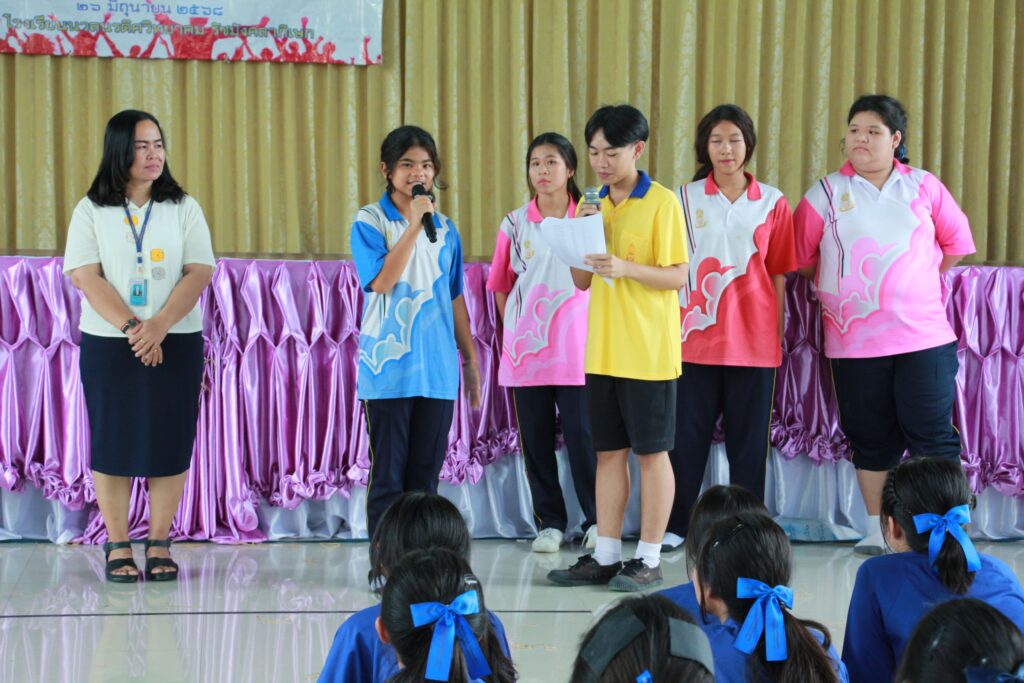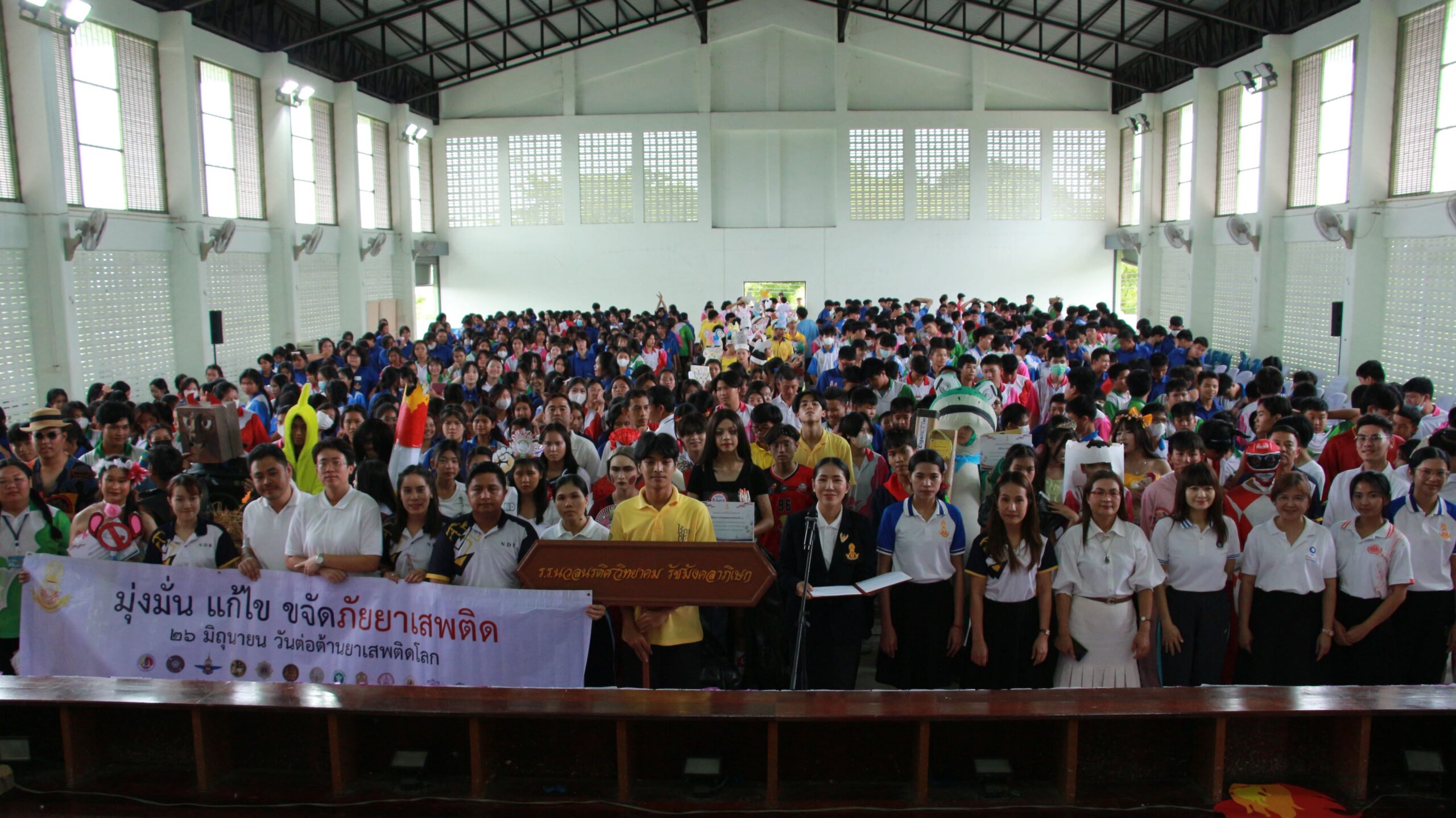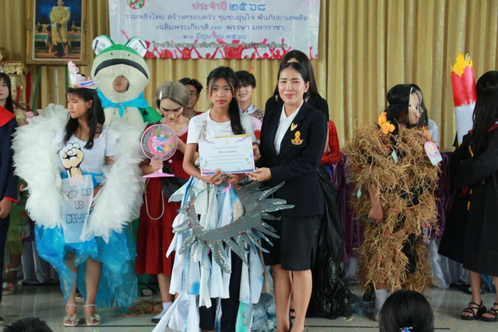 ✨ นำโดย ดร.เปรมยุดา สุดจำ ผู้อำนวยการโรงเรียน นายณัฐดนัย แก้วเล็ก รองผู้อำนวยการโรงเรียน ฝ่ายบริหาร คณะครูและบุคลากรทางการศึกษา จัดกิจกรรมวันต่อต้านยาเสพติดโลก ประจำปีการศึกษา 2568 เพื่อตระหนักถึงปัญหายาเสพติดที่ยังคงเป็นภัยคุกคามต่อสังคมและเยาวชนโดยมีจุดมุ่งหมายหลักเพื่อปลุกจิตสำนึกให้ประชาชนรู้ถึงภัยของสารเสพติด โทษและผลกระทบที่เกิดขึ้นต่อร่างกาย จิตใจ ครอบครัว และสังคม และร่วมกันสร้างภูมิคุ้มกันทางจิตใจให้ห่างไกลจากสิ่งเสพติดจากการเปิดโอกาสให้นักเรียนได้แสดงออกอย่างสร้างสรรค์ผ่านกิจกรรมประกวดชุดแฟนซีและเดินขบวนรณรงค์ต่อต้านสารเสพติด