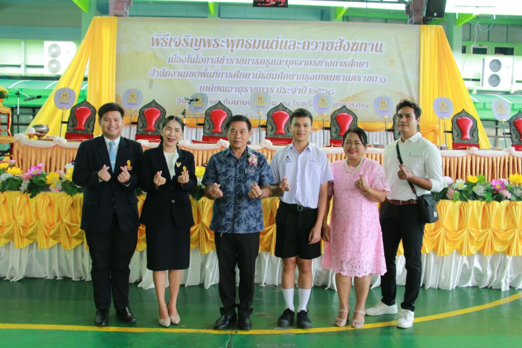 ✨ นำโดย ดร.เปรมยุดา สุดจำ ผู้อำนวยการโรงเรียน นายณัฐดนัย แก้วเล็ก รองผู้อำนวยการโรงเรียน พร้อมด้วย นายประวัติ อุนธุโร หัวหน้ากลุ่มสาระการเรียนรู้ศิลปะ ผู้เกษียณอายุราชการ นางกัญธศิณุวัน เกิดประวีพัส หัวหน้ากลุ่มสาระการเรียนรู้สังคมศึกษา ศาสนาและวัฒนธรรม นายจิรภัทร ทองเรือง ครูกลุ่มสาระการเรียนรู้ศิลปะ นายวิโรจน์ ภิรมย์ม่วง บุคลากรสนับสนุน เข้าร่วม “พิธีมุทิตาจิต ร้อยรัก ถักทอใจ สานสายใย สพม.กท 1 ประจำปี 2568” โดยได้รับเกียรติจาก ดร.อดุลย์ศักดิ์ บุญเอนก ผู้อำนวยการสำนักงานเขตพื้นที่การศึกษามัธยมศึกษากรุงเทพมหานคร เขต 1 เป็นประธานในพิธีเปิด โดยจัดขึ้นเพื่อแสดงมุทิตาจิตและเชิดชูเกียรติแก่ผู้บริหารสถานศึกษา ครู และบุคลากรทางการศึกษาในสังกัด สพม.กท 1 ที่เกษียณอายุราชการ ประจำปีงบประมาณ พ.ศ. 2568