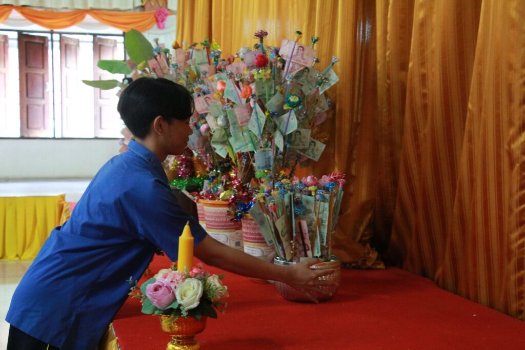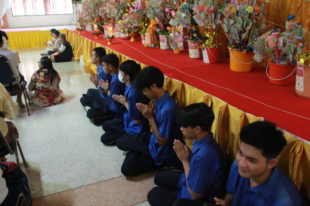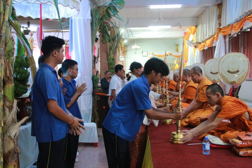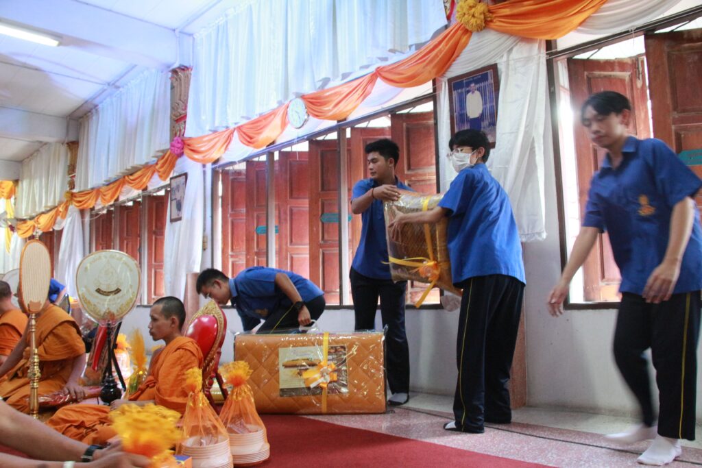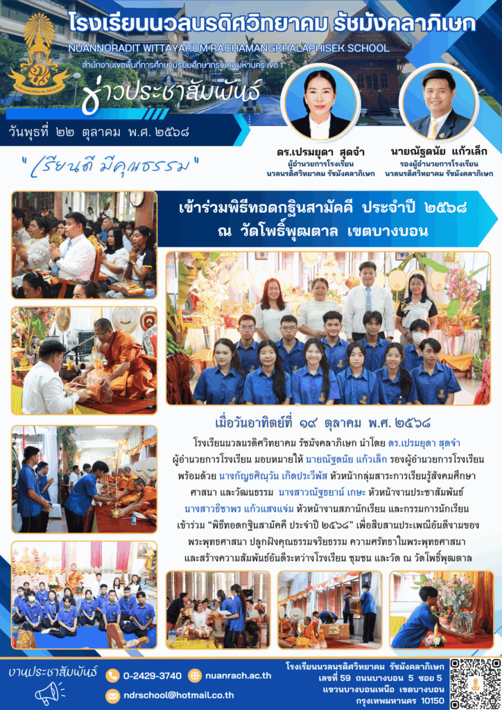 ✨ นำโดย ดร.เปรมยุดา สุดจำ ผู้อำนวยการโรงเรียน มอบหมายให้ นายณัฐดนัย แก้วเล็ก รองผู้อำนวยการโรงเรียน พร้อมด้วย นางกัญธศิณุวัน เกิดประวีพัส หัวหน้ากลุ่มสาระการเรียนรู้สังคมศึกษา ศาสนา และวัฒนธรรม นางสาวณัฐธยาน์ เกษะ หัวหน้างานประชาสัมพันธ์ นางสาวธิชาพร แก้วแสงแจ่ม หัวหน้างานสภานักเรียน และกรรมการนักเรียน เข้าร่วม “พิธีทอดกฐินสามัคคี ประจำปี 2568” เพื่อสืบสานประเพณีอันดีงามของพระพุทธศาสนา ปลูกฝังคุณธรรมจริยธรรม ความศรัทธาในพระพุทธศาสนา และสร้างความสัมพันธ์อันดีระหว่างโรงเรียน ชุมชน และวัด